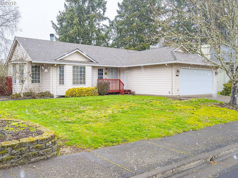 Lovingly maintained single story ranch in quiet neighborhood. Great floor plan with vaulted ceiling in living & family room. Newer roof, furnace and garage door. Large master suite with walk-in closet. Lots of natural light. Fenced yard with deck, hot tub and garden bed area.