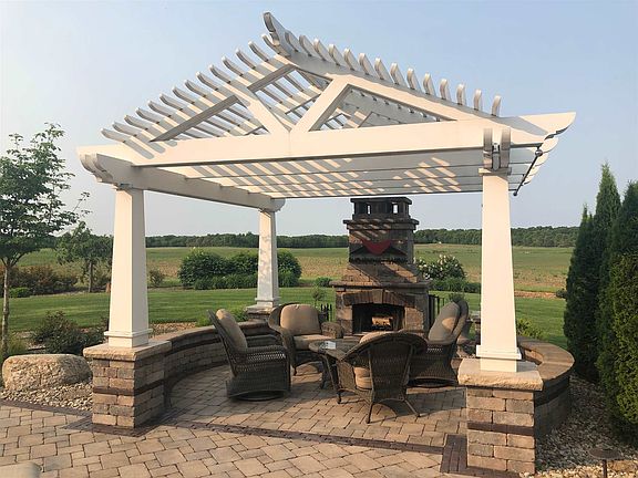 SPECTACULAR only begins to describe this open concept custom built ranch on 6.93 acres with 5 acres in woods. This 3 to 4 bedroom 3 1/2 bath executive home features striking porcelain floors, custom cabinetry throughout, a remarkable master bedroom suite with large walk in shower, heated bathroom floors, soaking tub, quartz countertops and large walk in closet. Kitchen has custom Ayr cabinets, exotic granite countertops, appliances by Jenn-Air & Electrolux. Beautiful office/Den w/ custom bamboo cabinetry, honed granite tops and bamboo flooring. A exceptional heated and air conditioned enclosed porch is open to the living area. Downstairs has 2 bedrooms, one is a bedroom suite w. full bath plus another full bath with heated floors, family room and kitchenette and large bonus room. Attached 3 car garage plus another 3 car garage with it's own burglar alarm system for everyone's cars and toys. Outside is a paver patio with pergola, fireplace and hot tub. Absolutely breath taking landscaping. In ground water system, custom pavers at home entrance, plumbed for LP gas to grill and so much more.