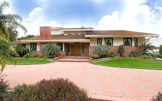 ONE OF A KIND!!! Custom estate home in the prestigious area of Yorba Linda ~ Situated on a private cul-de-sac street surrounded by multi-million dollar estate homes ~ Stately curb appeal with circular driveway enhanced with pavers ~ Custom carved double door entry flanked by stained glass opens to living room and family room ~ Lots of interesting architectural interior features makes this a truly unique home ~ Expansive living room with lots of natural lighting and a center fireplace ~ Formal dining that can accommodate a large dinner gathering ~ Spacious family room features beamed ceilings and French doors that lead to rear deck ~ Cozy sunken fireplace seating area ~ Gourmet kitchen with granite counters and center island ~ Casual eating area with bay windows, a great place to start the day! HUGE upstairs bonus room with distinctive fireplace ~ Master suite with fabulous view of rear yard ~ Luxurious master bathroom with unique design features ~ 3 additional oversized bedrooms ~ Convenient office and 1/2 bathroom is off the family room ~ Other amenities include dual paned windows, central vacuum system and lots of built-ins and extra storage areas ~ Outdoors enjoy a 38,586 (title estimated) flat lot in a private setting ~ Sprawling rear deck that spans the entire home ~ Fruit orchard with peach, macadamia nut, pear, avocado, plum and tangerine trees ~RV access ~ This lot is large enough for just about anything you want! Equestrian zoning ~ This is a one-of-a kind property!