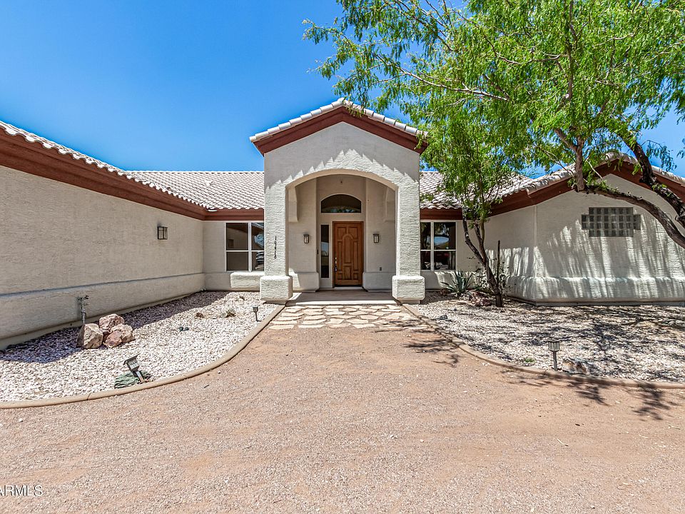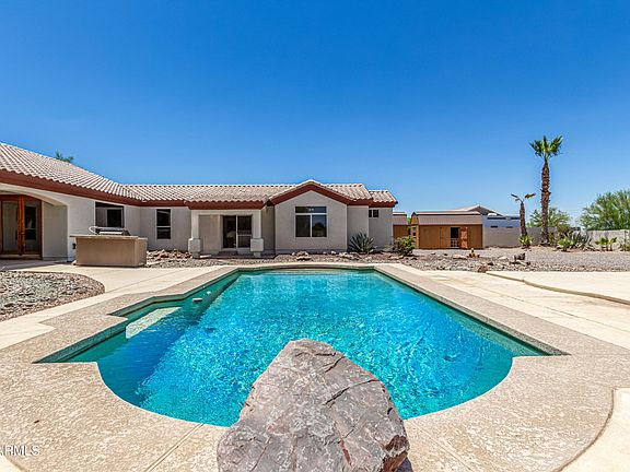 Welcome to your dream home! Nestled on a sprawling just under an acre-sized lot, this exceptional property offers a perfect blend of luxury, comfort, and privacy. From the moment you arrive, you'll be captivated by the meticulously landscaped grounds and the inviting curb appeal. Inside you will find a spacious dining, living and family room. The primary suite is split and has a huge en-suite bathroom and closet. Home also features a guest suite with kitchenette, separate bathroom, bedroom and living area! Step outside and find a large covered patio, sparkling pool, and built in BBQ. Located just past Estrella Mountain Ranch with close access to Goodyear amenities.
