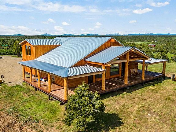 Welcome to your extraordinary 49-acre property in Dolores, Colorado, where breathtaking views and unparalleled natural beauty await you. This magnificent estate is a haven for nature lovers, outdoor enthusiasts, and those seeking a serene and secluded retreat. As you approach this property through a private drive, you will immediately be captivated by the awe-inspiring scenery that surrounds you. With panoramic vistas stretching across rolling hills, dense forests, and majestic mountains, the views from this property are simply breathtaking. Whether you're sipping your morning coffee on the porch or enjoying a picturesque sunset, the vistas will leave you in awe, providing a constant reminder of the beauty of the natural world. The centerpiece of this property is a charming 2-bedroom (one is non-conforming) bardominium that effortlessly combines rustic charm with modern comfort. Step inside to find a warm and inviting living space that harmoniously blends traditional elements with contemporary finishes. The open-concept design creates a seamless flow between the living, dining, and kitchen areas, making it perfect for entertaining family and friends. The large windows throughout the bardominium not only flood the space with natural light but also offer uninterrupted views of the surrounding landscape, allowing you to connect with nature from the comfort of your own home. The bedrooms provide a peaceful sanctuary, while the well-appointed bathroom ensures your comfort and convenience. Additionally, this property boasts an unfinished 6,000-square-foot log cabin, providing an exceptional opportunity for customization and personalization. Imagine designing your dream mountain retreat or creating a luxurious guest lodge tailored to your specific needs and preferences. With its expansive size, the log cabin offers ample space to accommodate multiple bedrooms, bathrooms, a grand living area, and any additional features you desire. This is your chance to create a truly unique and bespoke living space that embodies your vision of a mountain getaway, or expand your investment portfolio as a luxury flip. For those with a passion for hobbies or in need of storage space, the property features a 3-car garage and an external shop building. The garage provides shelter for your vehicles while still offering room for a workshop or storage area. The shop building is a versatile space that can be utilized for various projects or as a dedicated workspace, providing the ideal environment for pursuing your interests or pursuing creative endeavors. Nestled within this remarkable property is a picturesque pond which drives wild life such a Black Bears, Trophy Mule Deer, and Elk to the property year round This expansive property is covered in native trees, and grasses to ensure a true Colorado experience on every inch of the land. Take in breath taking views of all the mountain ranges that surround Dolores from the wrap around porch of the log cabin or the benches surrounding the outdoor fire place.