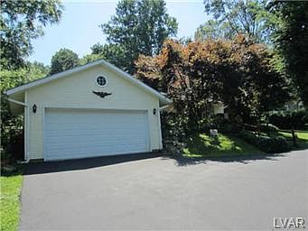 This wonderful ranch home is unique with a cottage-like feel in desirable Upper Saucon/Southern Lehigh. It is registered with National Wildlife Federation & has a backyard habitat. Includes many perennials, lilly pond with waterfall and an apple tree. Three sources of heat incl. wood burning FP in LR, wood stove in FR & oil (very economical-extra insulation under siding & attic). Central air with 3 ceiling fans. Cathedral ceiling in FR w/wood beams, wainscoting, crown molding. 2 Garden windows, Hickory cabinetry w/pull out shelves, Dupont laminate floor, reverse osmosis drinking water system, Eye level oven. Granite top vanity in main bath, additional shelves & cabinets in baths & linen closet. Patio door from Master BR to back deck. 2nd deck in front of home. Walk-in closet & cedar closet. Many more amenities too numerous to mention. Freshly painted, neutral colors. Minutes from major highways & conveniences - minutes to Promenade Shoppes & Artsquest, Casino. A pleasure to see.