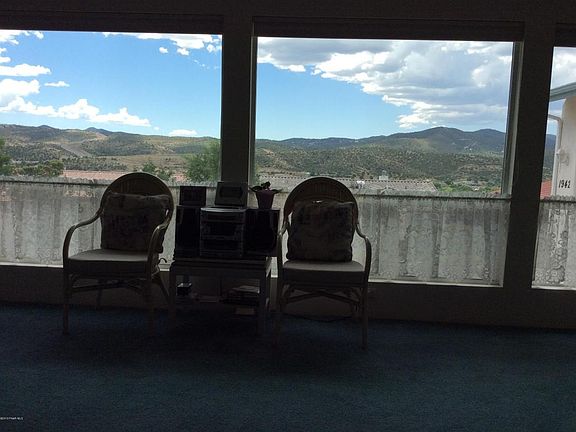 This is a beautiful original owner second home. The entire front of the home is windows with distant views of mountains, city, riparian area, and rolling hills. Easy care landscaping, off street parking, 2 car attached garage that opens to the kitchen. Small easy care back of home. Steps from the street to the home. Very close to the Prescott Adult Center and Lake Watson & Willow Lake.