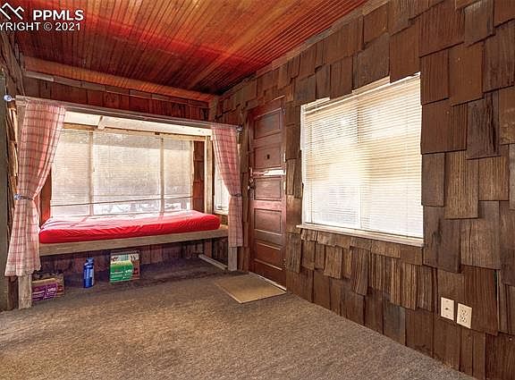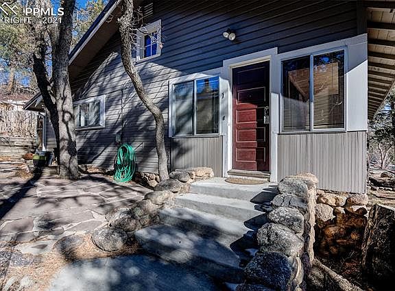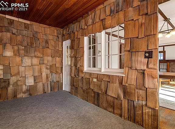 Location, charm and original woodwork set this home apart from all others. Built in 1919, this 2 bedroom 1 bath home is located in the desirable Cheyenne Canyon. Lots of intricate woodwork adorn the home, from the built in cabinets with glass fronts at the wood burning fireplace, to the solid doors with original hardware throughout, even the built in closets boast the original wood shelving. Wood trim accent the large, open dining area, living room combination with hardwood floors. The full bath has a claw foot bathtub with an old fashioned built in medicine cabinet. The enclosed covered front porch has served as an office area, and has a bead board ceiling with wood shingle accents. There are two bedrooms, the master has two walk in closets, built in cabinets and direct access to the bathroom. The kitchen could use updating, with room to add more cabinetry. The laundry room leads from the kitchen, with a door to the back of the home. The home has wood siding and a metal roof with stone accents. There is off street parking in front of the home for 2 or more cars, and an additional private parking spot off the back of the home. A set of stairs lead up from the street to a private flagstone patio area. Low maintenance yard, with side and rear fencing, with a gate leading to the back alley/street with additional parking. This is a one of a kind home, a rare opportunity to live in the Canyon.