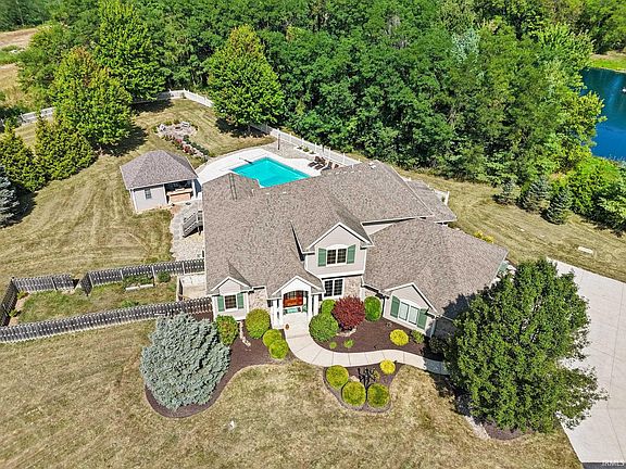 One step inside and you won't want to leave! This home is a beautiful oasis situated on a private 3.45 acre lot. This property has been well attended to and features a kitchen/breakfast area with awesome views of the inground pool and path to a firepit! The living and family room areas on the main floor are generous in size. The lower level provides an additional living space, plus exercise room, full bath, a bedroom, and an office! The main floor primary suite also has a large sitting room with views of the pool area as well. Upstairs are 3 more bedrooms and a full bath. There is a generator so power outages won't be an issue! In the last 2 yrs, the updates include new flooring and paint throughout, bath fixtures, dishwasher, water heater, sump pump, automatic pool cover, and pool equipment (htr, filter, and pump). The exterior wood has just been painted There is a bldg to house the pool equipment and floaties! There is also a large pole barn with 3 overhead doors. This won't last long and if you hurry, you can enjoy the pool for a while before winter!