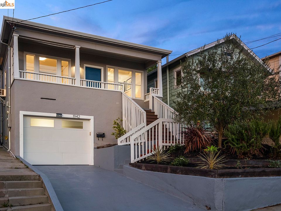 Lovely hilltop location in Highland Terrace! Welcome Home to 1942 E 26th in Oakland! This lovely two bedroom, (+ detached bonus room) two bathroom home has had numerous recent updates including: New Roof, Updated Electrical, new paint, foundation repairs, a remodeled kitchen and bathroom! Hardwood floors and a sleek modern kitchen just add to the cozy feeling in this home. This gorgeous brand new indoor/outdoor, eat-in kitchen is the heart of the home. Massive island seats 6, with ample counter space for all your culinary projects. Kitchen opens up to an expansive covered porch perfect for hosting and Al fresco dining, essentially acting as a second living room for most of the year! The detached studio in the back that is hand built by the seller, with redwood deck and kitchenette, overlooking garden with views of the Bay. Perfect as a home office, guest room, zoom room, yoga room, or? A gorgeous and varied vegetable garden will delight the green thumb homeowner. The edible landscaping has raised redwood garden beds, abundant perennials, table grapes, plums, pluots, lemons, blackberries, culinary rosemary, and a gorgeous olive tree in the front! Offering two bedrooms, two baths, an attached garage and lovely garden make this a wonderful opportunity for a new home owner!