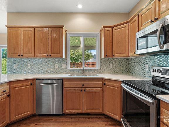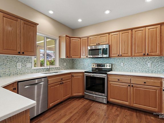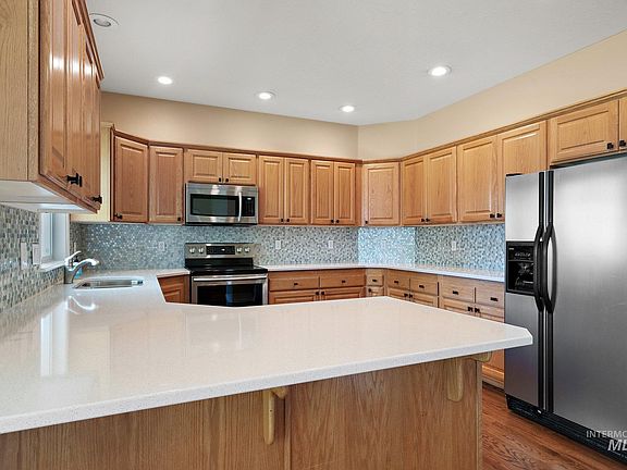 You can have it all!! Gorgeous well maintained home that has been lovingly cared for by same owners for many years. Check out the pull through 4 car gar w/43' deep bay & concrete slab outside of pull through door. True 4 beds+bonus room, 9' ceilings on main. HUGE rmdl kitchen w/white quartz counters, tile backsplash, SS appl, tons of cabinets, walk in pantry. Master on the main level w/sep shower & large deep 6' soaking tub, dbl vanities, WIC. Tons of windows, light & bright, staircase lights, gorgeous REAL hdwd floors. Huge great room w/cozy gas frpl, lots of windows. Big laundry w/mud sink, folding table, cabinets. Peaceful N facing backyard, oversized cvd patio, concrete curbing & room on sides of home for more privacy! Home is pristine & waiting for new owners to love for many years too. Smaller quaint, quiet sub. Close to freeway entrance to go all directions easily. Walking distance to park nearby & high school. New roof 2024, A/C in 2020. TRULY MOVE IN READY!!