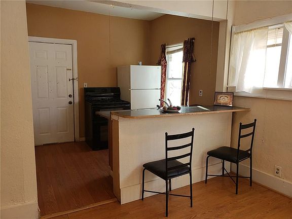 Cheaper that RENT. Move in condition. Freshly painted throughout. Laminate hardwood flooring in living room. Newly carpeted bedrooms. Spacious eat in kitchen, bath with tile flooring. Includes stove and refrigerator. Newer windows, newer siding and roof was replaced a few years ago. Close to downtown, shopping areas and schools. NFC area to build your dream garage, and potentially own the East lot next to it. Ask your realtor today for a showing and all details.