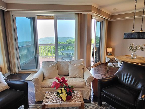 Stunning 2 bedroom, 2 bath condo high atop Wintergreen Resort. Recently updated with all new appliances, cabinetry, disposal, copper sink, countertops in kitchen as well as new flooring throughout, water heater and hardware. This never rented, spacious condo is located in the last ridge-top section of condos at Wintergreen Resort. No more ridge-top building allowed due to local ordinance change. Enjoy the views of ski slopes and the Blue Ridge Mountains year-round from the large deck which opens from both the dining and living area. No need to worry about stairs, there is an elevator and the one-level living floorplan invites you and your guests to come in and relax by the fireplace and enjoy the comfort of this mountain top retreat. This condo is a rare opportunity. Don't miss out.