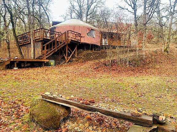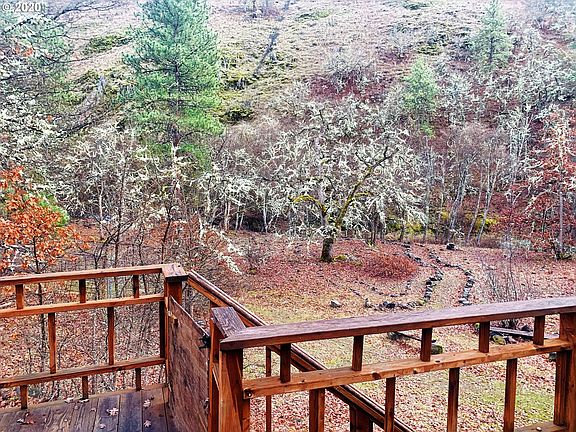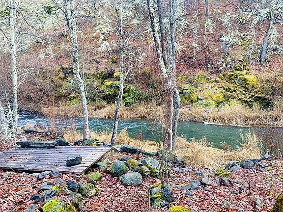 Perfect get away just 19 miles North from HWY 14 at Lyle. This is a great set up along the beautiful Little Klickitat River with approx. 420' low bank frontage. Get cozy in your 24'Pacific Yurt with heating and air conditioning! And you can bring your friends to stay in your separate guest quarters above with a private 1/2 Bath. Gaze across the river from your porch up at the Canyon... everything the light touches is yours, clear to the top. No true Master, yurt is really studio style.