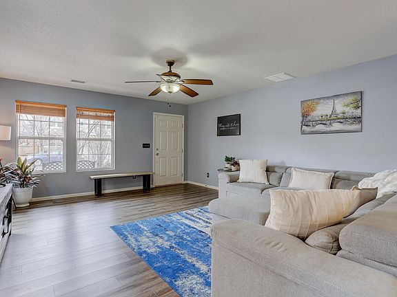 This fantastic 3 bed/3 bath home boasts an open floor plan, huge kitchen and loft area! Vinyl plank flooring, refinished cabinets, plumbing fixtures and central air conditioning make this home move-in ready! Ideally located in the ever-popular Meadows neighborhood, close to neighborhood parks, schools, trails, shopping and entertainment! With over $30k in in landscaping, you'll love the private back yard with a beautiful custom stamped concrete patio! *Note interior paint color throughout house is white, not blue as seen in photos. Renter responsible for utilities. No smoking.