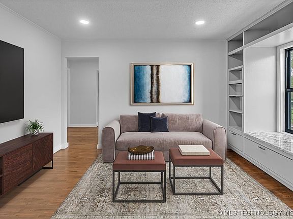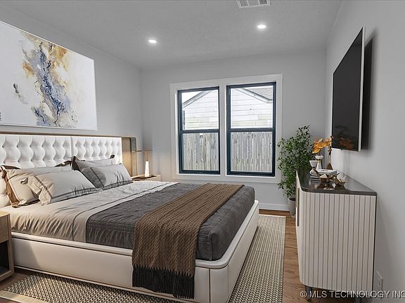 This inviting Craftsman-style home has been lovingly owned by the same family for nearly 30 years and has just received a tasteful renovation inside and out. Sitting on a crawl space with approximately 1,262 square feet per appraisal, the home beautifully blends original charm with modern updates. The refinished original hardwood floors preserve its character, while new improvements include a roof, gutters, Energy Star windows, kitchen cabinets with granite countertops, stainless steel range/oven, dishwasher, microwave, hot water tank, and concrete driveway. The fully fenced yard features a detached two-car garage and storage shed for ample space, plus a storm cellar that can be accessed from both inside and outside of the home for added peace of mind. Conveniently located within minutes of schools, Highway 244, Tulsa International Airport, White River Fish Market, the Tulsa Zoo, and more, this move-in ready property offers the perfect combination of comfort, character & convenience.