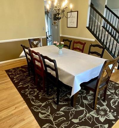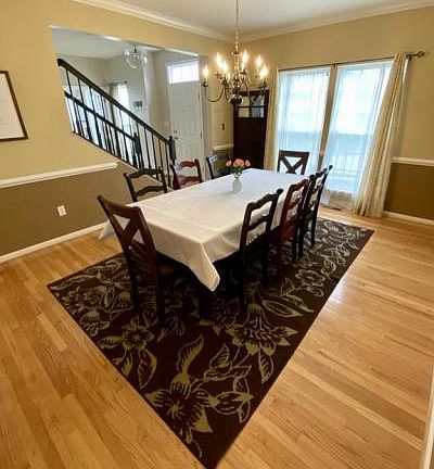- Ceiling Fan(s), Kitchen Island, Window Treatments, Recessed Lighting, Walk-In Closet(s), Dining Area, Eat-in Kitchen, Soaking Tub, Crown Molding, Carpet, Open Floorplan, Wood Floors, Attic, Formal/Separate Dining Room, Master Bath(s), Upgraded Countertops, Kitchen - Gourmet, Family Room Off Kitchen, Chair Railings, Stall Shower