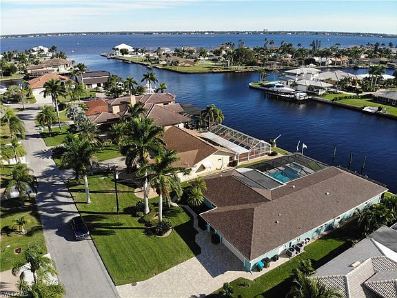 Take full advantage of Florida waterfront outdoor living and entertaining in this spectacular direct access home with most likely the largest outdoor cabana in the Cape! New oversized solar and electric heated pool and SPA with views of the river! New Gourmet kitchen with large center island, tons of storage, new tray ceilings in family and living rooms. NEW NEW NEW- roof, driveway, insulation, electric, new floorplan, driveway, A/C systems, HUGE under truss cabana with full outdoor kitchen, insulated ceiling and electric shutter, all new impact windows and sliders....this is essentially a new home, all work done by licensed contractors and permits. Three large bedrooms, den/office, 3 full bathrooms, large storage room and separate laundry room-lots of storage! Desirable southern exposure 150ft deep lot with views across the 200ft wide Palaco Grande Canal and only minutes to the river. This home must be seen to be fully appreciated, make your appointment today!