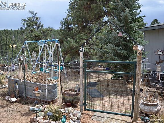 Come Relax at your mountain retreat in the woods! Great horse property set on 8+ picturesque acres! Could be a Air B & B or investment property, divide off the acreage and build a second home. This Ranch style home has 1836 sq ft inside to include Master Suite, vaulted ceilings, ceiling fans, wood flooring, and lots of natural light with multiple skylights for natural lighting. Spacious Kitchen has skylight, pantry, tons of oak cabinetry, stainless appliances. 2 additional Bedrooms have nice sized, walk-in closets and share a full Bathroom. Separate Laundry and utility area with sink, shelving and room for a second frig or freezer. Other structures on property are included. Property is mostly fenced. Outdoor living space highlights the trees and forest, rolling hills, privacy with 2 entry points from Spring Creek Dr and W Bison Creek Trail. Home does need work. HOA is voluntary, no dues. Located north of Divide, near Pike National Forest, all roads are county maintained. Mueller State Park and Dome Rock only a short distance away. Great fishing nearby and access to excellent mountain biking, atv, and hiking trails all around the Teller County area. Properties with acreage, privacy, trees, & live stock amenities are hard to find. Come see this secluded property today and make it yours.