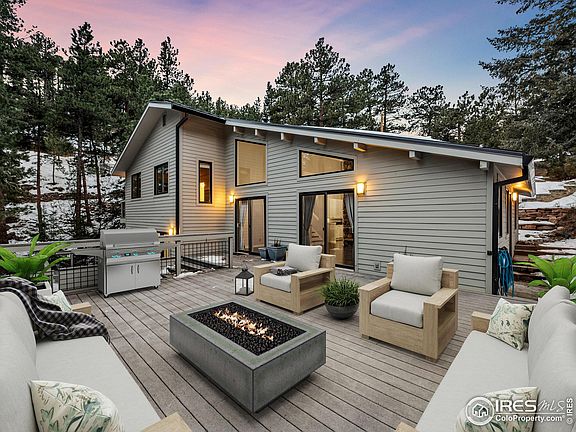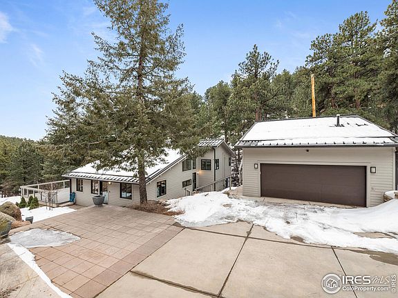 Sunny mountain retreat nestled in the mountains just ten minutes to downtown Boulder. Commune with nature as you listen to the bucolic stream from several bedrooms, lay in hammocks among the trees, or entertain on the multiple (trex) decks. Nestled in coveted Pine Brook Hills, this home offers spectacular mountain serenity. An abundance of natural light with large windows, sky lights, high ceilings, and solid hardwood floors with a moss rock gas fireplace. Siding is Hardie Plank, metal roof has 50 year warranty and has updated landscaping. Oversized garage with bright 21x9 office/studio/home gym above the garage (included in sq.ft.) See attached Matter port.