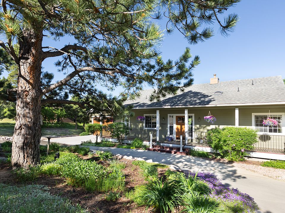 This sweet home built for the seller's mom in 1998 was named by her as "The Cutest Little House in Woodmoor" and we couldn't agree more. It has been favorite family-owned home for 20 years and is now ready for its next owner! Nestled on .75 ac w/lots of open space to fully enjoy the Front Range views + its own natural pond. This well-built custom home w/classy ML living is situated in a highly sought-after area in Woodmoor. From the charming front veranda you'll enter & immediately be swept away by the rear views. The spacious & warm kitchen has hardwood flooring + lrg walk-in pantry, Dacor gas cooktop, Granite counter & backsplash, laundry room, new carpet & paint, plantation shutters & custom blinds. Great room has cozy gas fireplace & built-in cabs w/room for a 70" TV. Master suite w/roomy walk-in closet + recently remodeled adjoining master bath enjoys the views as well. Truly enjoyable huge composite deck w/metal rail, pergola, shades + mtn & pond views incl storage below. NEW carpet, NEW ext paint, NEW garage door, NEW front door, NEW asphalt, NEW concrete pad & NEWER deck, NEW fence, dog kennel, SECURTIY SYSTEM & much much more.