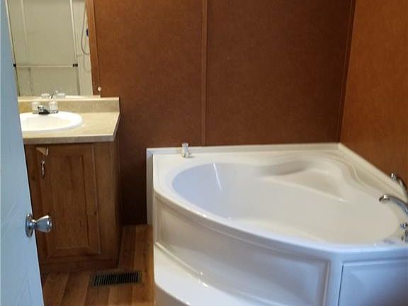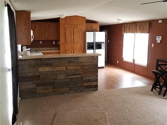 What a peaceful place to live! Very nice 2008 manuf home on 5 acres of beautiful land with lots of trees. Home has a NEW 6 month old roof. Kitchen is large with all appliances, breakfast bar. Master is large & has a great en suite whirlpool bath & separate shower; also double vanities. NEW wood deck on back & wood porch on front, both very well built! View from deck is gorgeous!