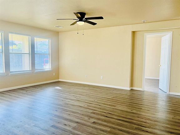 Spacious one story in Remington Ranch has split bedroom plan with large open living areas and covered outdoor patio in the back yard. No carpet .