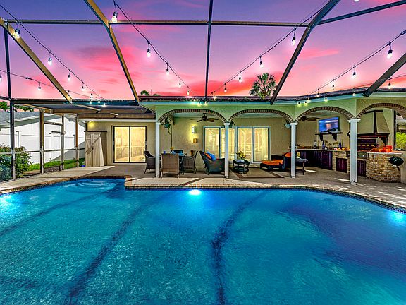 Wow! 4 Bedroom 2 Bath 2 Car Garage Pool & Waterfront Home on a Wide Canal on a large 8,250 square foot lot in American Homes! Dramatic entrance with soaring cathedral ceilings, skylights, and a wall of sliders that highlight the pool and lush tropical landscaping of the backyard. Extra-open floor plan with split bedrooms. Tile on diagonal in living areas, tile in the master bedroom, and wood laminate in the 3 guest bedrooms. Renovated kitchen features wood cabinets with granite counters and backsplash plus stainless appliances including a double French door refrigerator. Fabulously updated master bathroom plus large walk-in closet with customized built-ins--both with high-end pocket doors that give you extra space. Brand new roof from 2021 with transferable warrantee. Newer electrical panel. Step out to a tropical paradise featuring a sparkling screened-in pool with swimout seat with Jacuzzi jets. The pool has "Double Sky Blue" color Diamond Brite® that was recently done and beautiful new tile. Pool/patio area features a built-in grill and wet bar. SUNDEK patio flooring. Slate fire pit. A great place to relax and/or entertain. Tons of lush landscaping is not only beautiful but provides major privacy plus a large grassy area. Lovely open porch off one of the guest bedrooms. 2 car garage is equipped with tons of pantry space. Extra storage shed attached to the side of home. Front-loading washer and dryer. Impact glass for all doors and windows except 2 (which have hurricane shutters for those). Automatic sprinkler system feeds off the canal for low water bills! Walk to Houses of Worship. Southwind Lakes AKA American Homes has a super low HOA fee of only $68.33 a month and features 2 parks, amazing new community pool, tennis, basketball, tot lot & more. All ages ok! Pet friendly. Amazing schools include Whispering Pines Elementary, Eagles Landing Middle & Olympic Heights Community High School. Attention investors-Home can be leased right away after purchase. No leasing restrictions per HOA.