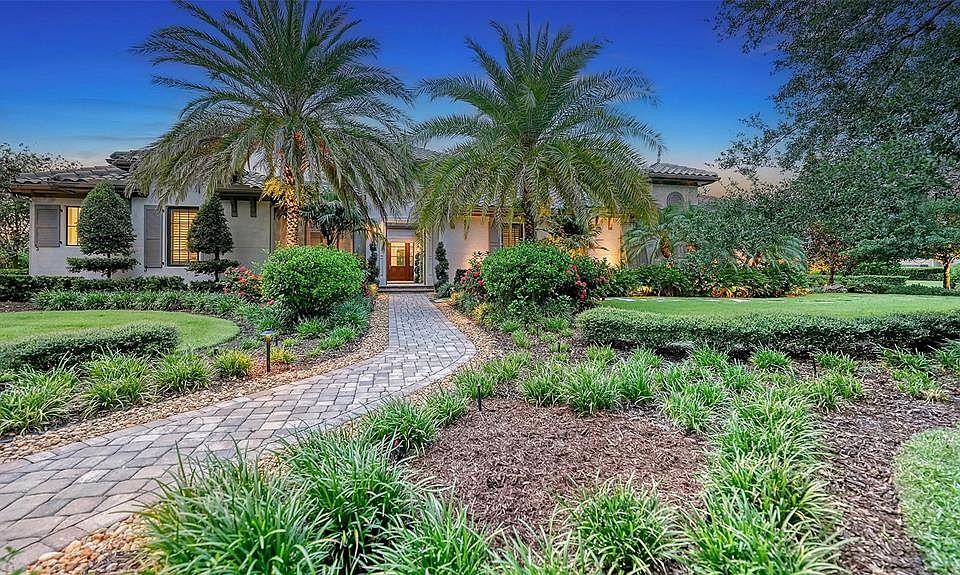 Welcome to this stunning custom-built estate by Anchor Builders, located on a spacious 3/4 acre homesite in the exclusive Concession community. Majestically set among mature, manicured landscaping that overlooks breathtaking views of the picturesque lake and private preserve, this California-style courtyard designed home is perfect for entertaining and enjoying luxurious living. Step through the grand Mahogany front door into the main family room, where you'll find a coffered wood ceiling, a stone surround gas fireplace, and elegant custom built-ins. Entertain guests at the built-in bar and store your finest wines in the temperature-controlled wine room. The living area's sliders disappear, blending seamlessly with the screened covered lanai that features an additional fireplace and wood beam ceiling details. The chef's kitchen is a dream come true, boasting Thermador appliances, a leathered granite island, ample upgraded cabinetry, a 6-burner plus griddle gas cooktop and custom hood, built-in double ovens, 2 refrigerator drawers, decorative tile backsplash, wood beams in ceiling, a baker's pantry and walk-in pantry. The formal dining room, highlighted by a tray ceiling, opens to a secondary courtyard with fountain through French doors. The kitchen breakfast area features two sets of French doors, one set opening to the lanai and the other to an outdoor covered kitchen area, complete with a sink, Lynx grill, refrigerator, and exterior pool bath. Relax in the large heated pool and spa surrounded by travertine while enjoying unobstructed views of the lake and preserve, offering complete privacy within the gated backyard's lush landscaping and serene setting. The primary suite is an oasis of luxury, featuring a gas fireplace, tray ceiling, crown molding, French door entry to the courtyard, disappearing sliders to the pool and lanai, remote blinds, a private office with built-in desk and cabinetry, large his-and-her walk-in closets with custom cabinetry, and a spa-like bath with marble flooring and counters. The main house also includes an office/den with wood floors and a wall of custom cabinetry as well as access to the courtyard, a second en-suite bedroom, powder bath, and functional laundry room. Positioned at the front of the home with access from the courtyard, the private casita is the perfect space for guests offering wood floors, a wet bar with sink, microwave, and refrigerator, a walk-in closet, and an en-suite bath. Additional features of this exceptional home include a potting shed in the courtyard for gardening enthusiasts, a 3-car side load garage with built-in storage cabinets, hurricane impact glass windows and doors, tankless water heater, plantation shutters, exquisite lighting and window treatments, and ample room on the large homesite for future additions. Experience unparalleled luxury, privacy, and elegance in this extraordinary home.