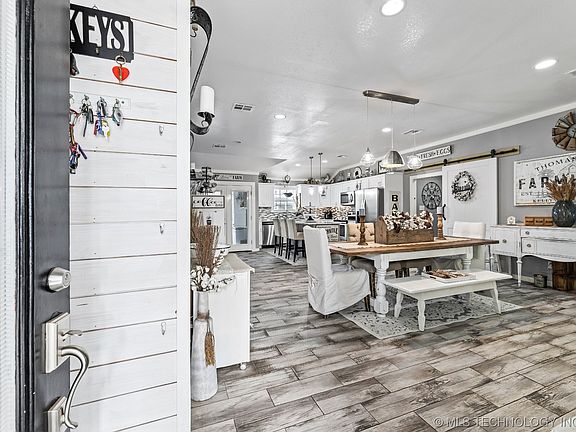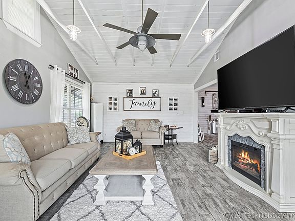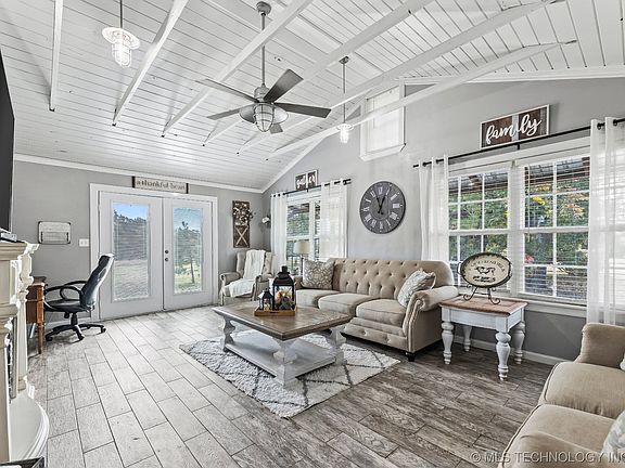 Ready to enjoy the quiet country? This beautiful home was built in 2019, 3 bedrooms, 2 bathrooms and showcases stunning farmhouse finishes! The open concept kitchen and dining room is perfect for entertaining and family gatherings! The kitchen features beautiful quartz countertops, stainless steel appliances, white cabinets, stainless steel farmhouse sink and french doors that lead to the screened in patio. The cozy living room has its own french doors and a gorgeous white shiplap ceiling with exposed rafters for the perfect farmhouse style. The master has a gorgeous walk-in shower, double vanity and walk in closet. The property features 3.5 m/l acres, an electric entry gate, a 20x30 shop on concrete slab and a carport. Brand new roof in Oct 2023, storm cellar, tankless hot water and an elevated deck looking over the back yard with a built in dog house underneath. This property has so much to offer and only a quick 10 minute drive to the turnpike entrance!