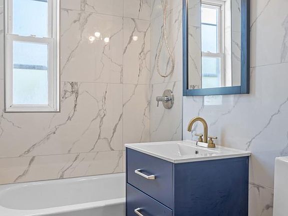 This house is a newly gut renovated single family home with a new kitchen with custom cabinetry, a 101 wine bottle cooler, 2 new bathrooms, new central air split AC system, new 2 car driveway and new fully finished basement which serves as a seperate en suite bedroom and bathroom.