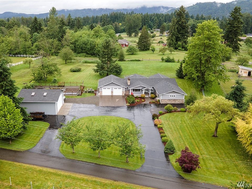 This Amazing Custom Rambler sits on 2.5 acres. Premier Issaquah Schools. Master bedroom hideaway w/designer walk in closet. New paint & kitchen counter tops, hybrid heat pump heating & AC system. Hardwood floors lead thru french doors to covered deck overlooking mountain hillsides. Bonus room that will handle any desire you have in life. Over-sized 2 car, plus detached dream garage, 3 RV parking spots. "Homesteader Garden" protected w/fence. This is the "Chance of Lifetime Property" to own!