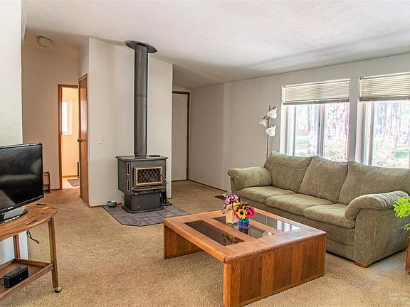 You don't want to miss this charming Deschutes River Woods manufactured home on .86 of an acre. This home has 3 bedrooms with the master separated from the other 2, has 2 full baths, separate living room, dining area and family room off the kitchen which makes this floor plan easy livin'! Lots of parking on the paved driveway with the attached 2 car garage, plus RV parking! The inside has recently been painted and is move in ready! Enjoy being at the end of a cul-de-sac on a great street! Your land has been well kept, is already fenced and is very usable to create your own oasis that backs up to the beautiful canal and trail.