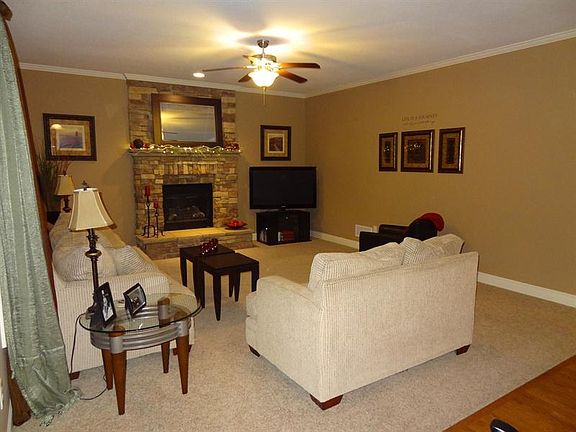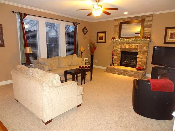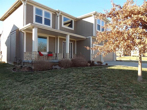 This beautiful 2 story home offers many upgrades including huge walk-in pantry, jetted tub, granite countertops and a gorgeous stone fireplace. Situated on a large corner lot in a cul-de-sac and conveniently located near Hwy 10 in excellent Olathe school district. Move in ready with refrigerator staying. Come take a look, you will love it!
