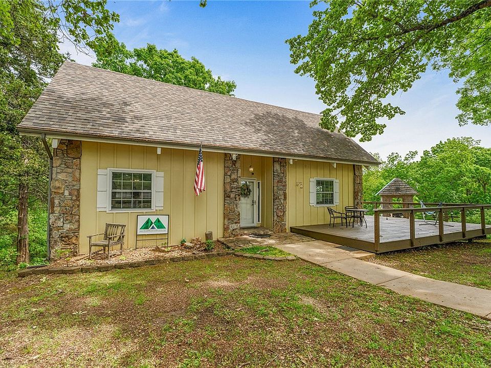 Prime investment opportunity in the heart of the Ozarks! This versatile property is a successful nightly rental, but could also be a vacation home, or full-time residence. Sitting on approx 1 acre, it's fully furnished and turn-key, including the Hot Tub that is only 1 year old. Enjoy breathtaking panoramic mountain views, just 10 minutes from Big Cedar Lodge, Top of the Rock, and Thunder Ridge Nature Arena, and only 20 minutes to Branson's top attractions. Cricket Creek Marina and lake access are just 2 minutes away, perfect for boating and fishing enthusiasts. Want to add a pool and amenities, or updates to significantly boost rental income and long-term value? It may be possible to roll those added costs into the purchase. Easy highway access, stunning scenery, and strong rental demand make this a must-see for investors and lifestyle buyers alike! The property being sold is approx 1 acre, new survey and Sellers Deed to govern.