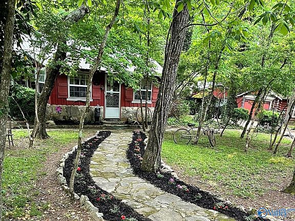 Step into history with this charming property featuring a historic log home, 2BR 2BA, and a cozy 1BR 1BA guest house. Embrace rustic elegance with wood floors, exposed log walls, wood ceilings, and beams. Safety meets luxury with the master shower room doubling as a storm shelter. Indulge in leisure with an indoor pool in the rec room, while screened porches offer serene outdoor living. Enjoy a fire in the woodburning fireplace on chilly nights. Ample windows and skylights bring in natural light, enhancing this storybook cottage's warmth and charm. Proximity to Lookout Mountain attractions makes this an excellent full time residence or rental.