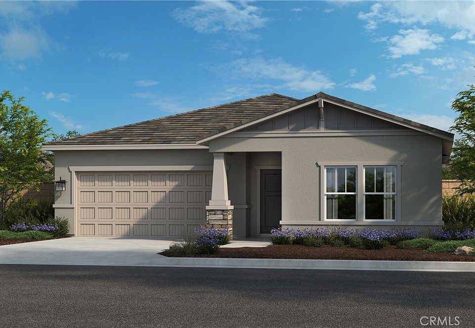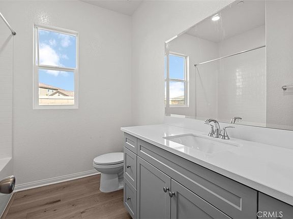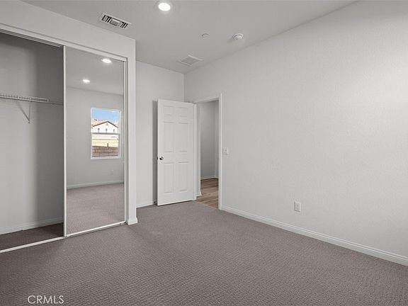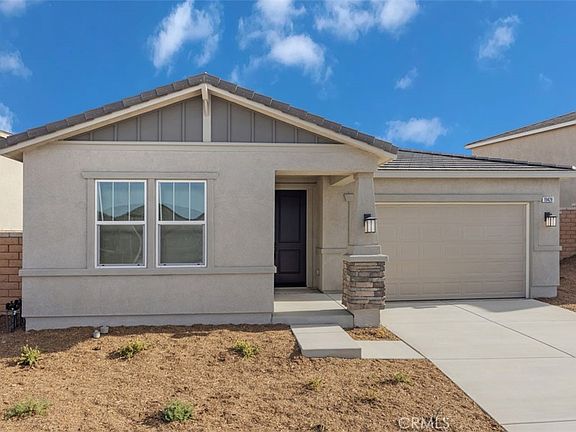 Brand new construction in the breathtaking scenic community of Spring Mountain Ranch. This new home has an open concept floor plan with 9-ft ceiling height. The stylish kitchen features upgraded shaker style thermofoil cabinetry in color granite, upgraded quartz solid-surface countertops & island and Whirlpool® stainless steel appliances including over-the-range microwave with hood, dishwasher, and gas range. Each bathroom also features cabinetry to match the kitchen, cultured marble countertops with China undermount sinks. Upgraded led lighting with dimmer at great room, primary bedroom, bedroom 2, bedroom 3, and den. Beautifully appointed upgraded flooring throughout. Energy-efficient features include Generation Lighting® LED fixtures, Moen® WaterSense® faucets and showerheads, a tankless water heater, and SunPower® solar energy system (buyer must lease or purchase) that may help reduce monthly utility bills. Close to UC Riverside and Loma Linda Medical Hospital. Photo is a rendering of the model. Buyer can either lease or purchase the Solar.