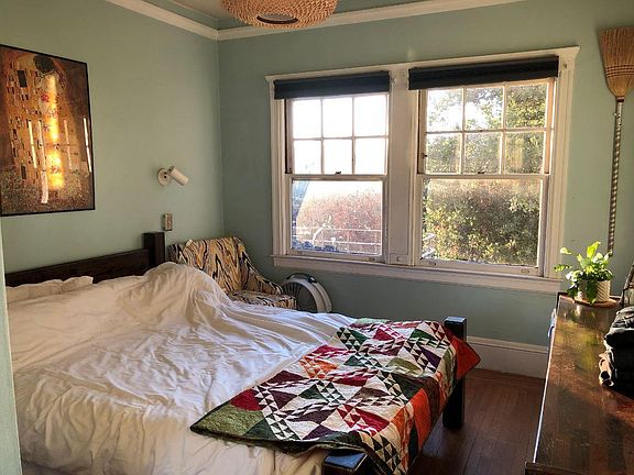 Corner unit in 1920's building. Use as a 2 bedroom with living room and eat in kitchen or as a large 1 bedroom with two living rooms. Hardwood floors, good light and lovely views throughout. Communal laundry and storage. Shared yard, garage and parking area.