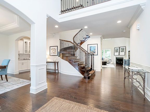 Step into timeless luxury with this immaculate 4 bedroom, 3.5-bathroom French Eclectic masterpiece, situated on an elegant corner lot in an exclusive cul-de-sac within the prestigious and serene neighborhood of the Village of WestClay. This home exudes elegance from the moment you enter the grand foyer, setting the tone for the expansive luxury within. The pristine interior features a stunning two-story great room with a fireplace and expansive windows that frame the serene, wooded backyard, creating a peaceful zen ambiance. The main floor hosts a luxurious Primary Suite, a retreat with high-end finishes that provides a sanctuary of comfort and elegance. The spa-like master bath boasts His and Hers counters, a luxurious soaking tub, a spacious walk-in shower, and a sophisticated closet system in the primary walk-in closet. The top-of-the-line gourmet kitchen is complete with a built-in refrigerator, all stainless steel appliances, soft-close cabinets and drawers, a spacious walk-in pantry outfitted with custom shelving, a mom's desk, additional storage, and an exquisite custom granite kitchen island. High-end finishes adorn every corner of this home, from custom woodwork to beaming hardwood floors throughout the main floor and second-floor landing. Custom built-ins add to the refined aesthetic. The second floor features three generously sized bedrooms, with a bonus room that can easily be converted into a fourth bedroom and is plumbed for a future washer/dryer hookup. The backyard is a true haven, offering unparalleled peace and serenity. Enjoy this private retreat from the screened porch, which overlooks a beautifully landscaped yard perfect for relaxation and elegant entertaining. The upgraded hardscape includes a stunning paver patio, composite deck, and a captivating 10-foot round water feature. Embrace a life of elegance and comfort in this exquisite French Eclectic home, where every detail has been meticulously crafted for the finest living experience.
