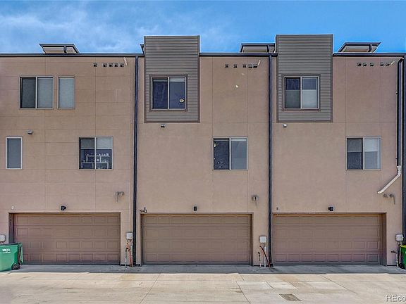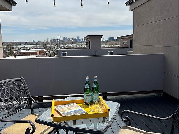 You will adore the spectacular sunrise and sunset views of the Denver Skyline, Sloan Lake and the Rocky Mountains from this gorgeous townhome in the heart of coveted Edgewater! Experience exceptional modern living in this impressive townhome complete with a Chef’s kitchen. It features a main floor bedroom with an en-suite bathroom and tub, on the second floor you will find the grand kitchen, sunny dining area, and brightly lit family room. The kitchen showcases custom quartz countertops, stainless steel appliances and a sink island with storage. Upstairs you will discover the large primary suite, with huge West facing windows, en-suite bathroom complete with double sinks, water closet and custom tile in the shower, plus a walk-in closet. The East facing bedroom features an en-suite bathroom with a tub. There is a conveniently located full sized washer and dryer next to the bedrooms. The fantastic rooftop deck with AMAZING breathtaking VIEWS of Downtown Denver, Sloan Lake, and the Mountains! The finished attached 2-car garage has built-in ceiling and side shelves to maximize the space for storage. Enjoy helpful modern updates: Smart Doorbell and Lock, on-demand hot water heater, NEST thermostat, dual USB & plug outlets in kitchen & guest room, 3 wall mounts for TVs, high efficacy washer and dryer, custom closet & light fixture in primary closet. This stunning home is close to Edgewater Marketplace, Edgewater Beer Garden, Walker-Branch Park, Sloan’s Lake Park and more! NO HOA! This is your sanctuary in Edgewater!
