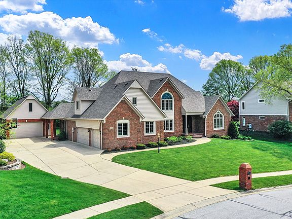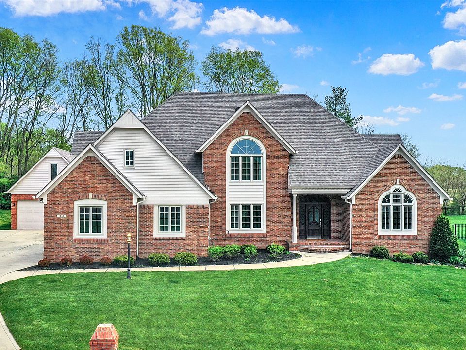 Welcome to Brentridge Estates, where luxury living meets practicality! This stunning 2-story residence boasts a grand great room, perfect for gatherings and relaxation. Ideal for the modern professional, it features two offices, one with a private entrance from outside. With four spacious bedrooms upstairs, everyone has their own retreat. Enjoy scenic views of the backyard from the charming eat-in kitchen. The finished basement offers versatility with a workout room, rec room, and convenient half bath. Outside, indulge in the heated pool or retreat to the heated 20x40 outbuilding with upstairs storage. The oversized 3-car garage provides ample space for vehicles and storage. Situated on a picturesque half-acre lot, surrounded by trees, privacy abounds. Additional highlights include dual HVAC, a new roof, and fresh exterior paint. Experience the epitome of comfort and elegance in this exceptional property.