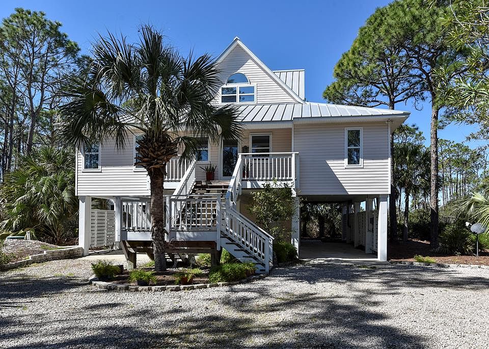 Jimmy Buffet must have had this tranquil retreat in mind when he wrote One Particular Harbor! Located within The Plantation, a private, gated community on St. George Island - this immaculate home is surrounded by lush landscaping that creates a peaceful oasis by the bay. Enjoy a glass of wine & island breezes from the expansive main level screened-in porch that runs the entire length of the home! Home also features 3 large bedrooms, 2.5 baths, an airy open floor plan, high-beamed ceilings, stainless appliances, large pantry, kitchen island & granite counters. Don't miss the huge top floor Master bedroom & en-suite bath (with beautiful marble top vanity!), that leads to its own private balcony & spectacular views-just perfect for morning coffee. Under home concrete pad parking, huge utility room & tons of storage. Come see-paradise awaits!