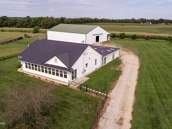 Welcome to this exceptional property offering over 4000 sqft of living space, perfectly blending modern comforts with charming features. In addition to the home there is a large barn with electric roll up doors on both ends, two stalls and new LED lighting. You will get a farm credit on your taxes because there are over 10 acres. Enjoy the open floor plan with beautiful hardwood floors complemented by LED lighting with remotes that can change the brightness as well as the color of the lights. The kitchen boasts high end appliances, open shelving and granite counter tops. The dining area has a custom built glass top table that seats 10 that will remain with the home. The living room has a gas fireplace. Including the Additional Dwelling unit there are 3 bedrooms with potential for two more in the basement as well is also a huge family room with gas fireplace, full bathroom and storage room. Enjoy a lovely sunroom across the front of the home complete with a dog door to access the fenced yard. There is an additional dwelling unit located just 5 feet from the main home that could double as an in-law suite, great guest quarters or a potential short term or long term rental. The property includes a large patio between the home and the 3 car garage. There are two fenced pastures with freeze proof watering systems. Off the back of the barn is a large carport for farm equipment. The barn is 89 x 67, large enough to make a riding arena or to house cattle. There are 2 stalls. The home has a security system and an electric gate on the driveway that all have remotes. The basement has a walk out door with hydraulic doors above the stairs to keep the weather out of the stairwell they can be opened from the inside. The fields are currently being mowed for hay to keep them cleared. There is an orchard with apple, pear, cherry, pawpaw and pecan trees. Don't miss the opportunity to own this stunning property that offers both luxury and practicality in a serene rural setting.