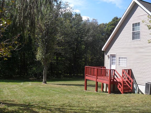 Welcome home to this charming cape cod that sits on over an acre! Featuring 3 bedrooms, 2 full baths, 1st floor master, 1st floor laundry, a wood burning fireplace, and a kitchen that is open to the dinning room, this home has so much to offer. Full unfinished basement with walk out double doors makes for an ideal storage space. Enjoy spending time on the new, huge, wrap around covered deck! The roof covering the deck is metal and the wood was just stained this past year. Workshop/shed can also be used for storage!