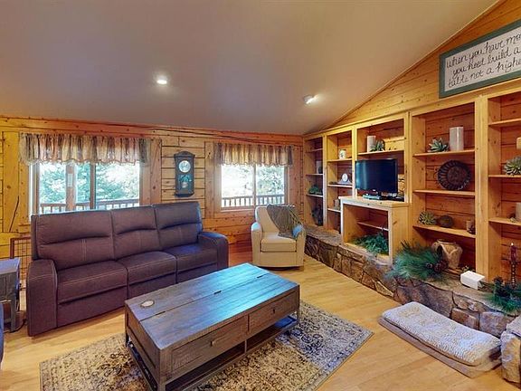 Nestled in the tranquil San Juan Springs subdivision, this charming D-Log cabin offers a perfect blend of rustic elegance and modern comfort. With its single-level layout spanning 1,755± square feet, the cabin features a striking floor-to-ceiling rock fireplace, an open living area, and a well-equipped kitchen with pine cabinets and tile countertops. Three bedrooms, including a spacious owner's suite with an ensuite bathroom featuring a jetted tub and two walk-in closets, provide ample space for relaxation. Outside, a covered deck and patio offer picturesque views of the surrounding mountains and valleys, while an attached two-car garage adds convenience. Close to downtown Lake City and surrounded by outdoor recreation opportunities, this cabin is an ideal mountain retreat for those seeking tranquility and natural beauty.
