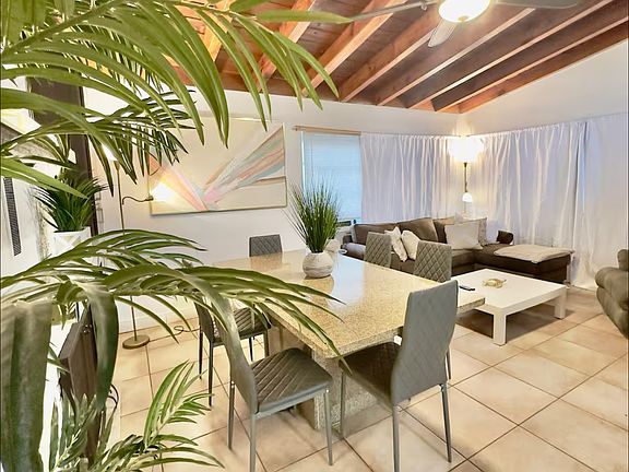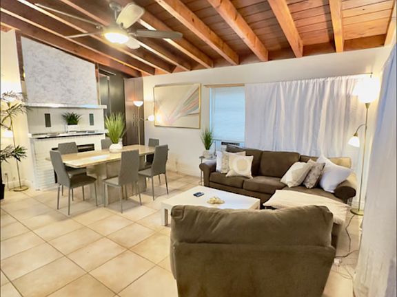 Welcome to this coastal tropical villa in Hollywood Florida! This chic two bedroom is perfectly located walking distance to restaurants, grocery stores and downtown Hollywood. A few minute drive to the beach/boardwalk and 10 minute drive to the famous guitar hard rock casino. The place is perfect for entertaining with a large six seat dining set, 65 inch TV, foosball table and rainfall showerhead.