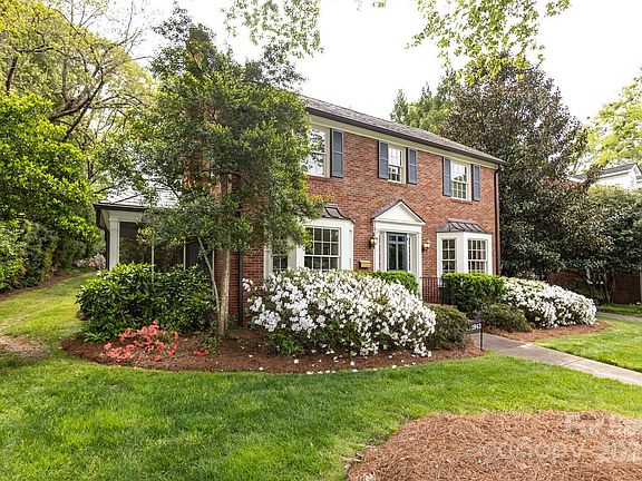 Classic Myers Park brick home with slate roof, high ceilings and beautiful hardwood floors throughout! Fantastic flow for entertaining and everyday living! Updated chef's kitchen with double ovens, gas cooktop, butler’s pantry, and abundant cabinetry. Two large open gathering spaces, off the kitchen, both with fireplaces, offer easy access to the outdoor living areas. Charming arched doorways and bay windows with seats grace the study and dining room. Dining room also has fireplace and side screened porch. Generous primary suite with luxury bathroom and two huge walk-in closets. Upstairs laundry with wrapping station/craft room. Stunning, private backyard with patio, hardscape and mature landscaping. Prime location — convenient to SouthPark and Uptown, and zoned for CMS schools: Selwyn, AG, and Myers Park.