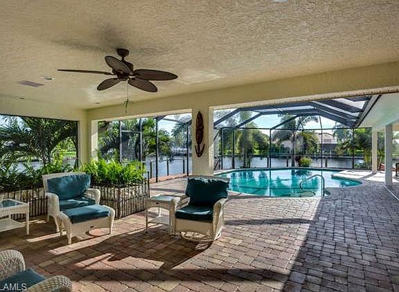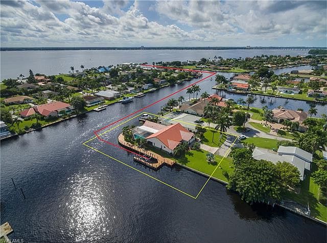 Boaters Paradise-Just 1 Block to River! Gorgeous & Spacious (over 3,100 sf) 4B/3.5Ba remodeled Palaco Grande beauty built for entertaining w/6 sets of sliders, a huge pavered pool deck & covered lanai perfect for enjoying gorgeous water views & the sw florida lifestyle! Oversized corner lot w 180' intersecting canals & 265 ft of waterfront w/an 8' wide captains walk all around!! Newer wraparound dock w/20k lb boat lift! Recently remodeled to the highest standard from top to bottom: Metal simulated Tile Roof & A/C (3 zones) (both 4 yrs new), top of the line Custom gourmet kitchen w/gorgeous custom wood cabinetry, granite counters, top of the line LG appliances (Double Oven, French Door fridge), matching custom entertainment ctr w/beautiful built ins & wet bar, full outdoor kitchen w/built in Weber grill, hood, fridge w/ice, sink & spacious bar area! Great layout w Formal dining & Living Rms, Family Rm w Cathedral Ceiling, Huge Master Suite w/Dual walk-ins & sliders to Lanai. Well appointed Private guest suites. Beautiful tile floors, Crown Molding, plantation & storm shutters, fireplace, propane pool htr & grill, new plumbing, hot wtr htrs & pool pump & an oversized garage! HURRY!