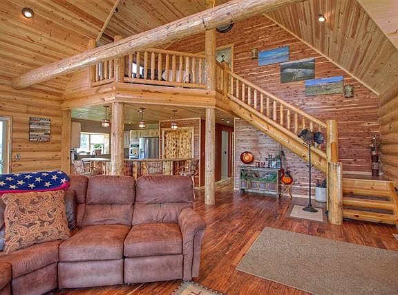 Peace of Mind With Views All Around. Walking through this Custom Log home is not only Beautiful, but Peaceful and Calming. Sitting on the Front Porch Sipping Your Favorite Beverage with Unobstructed Vews of the Monument, Priceless. Custom Stone Counter Tops (Robert Stone), Jenn Air Appliances, Tile, Wood Flooring & Carpet. High End Fixtures & Craftsmanship In This one of a kind home. Master En-Suite is Stunning With a Copper Tub & Custom Tiled Dual Head Shower. All Interior Lights LED and Customized. The Roof is Powder Coated Metal, Will never Rust or Change Colors. The Ultimate Shop, 40X60, Insulated, 220 Wired, and has 6 Vehicle Cap. This Is the Ranchette you have always wanted with almost 4.5 acres, the Possibilities are Endless. Automated Sprinklers throughout property. No HOA's, Great Schools Nearby, Close to town but away from the hustle & bustle. This Is A Must See!