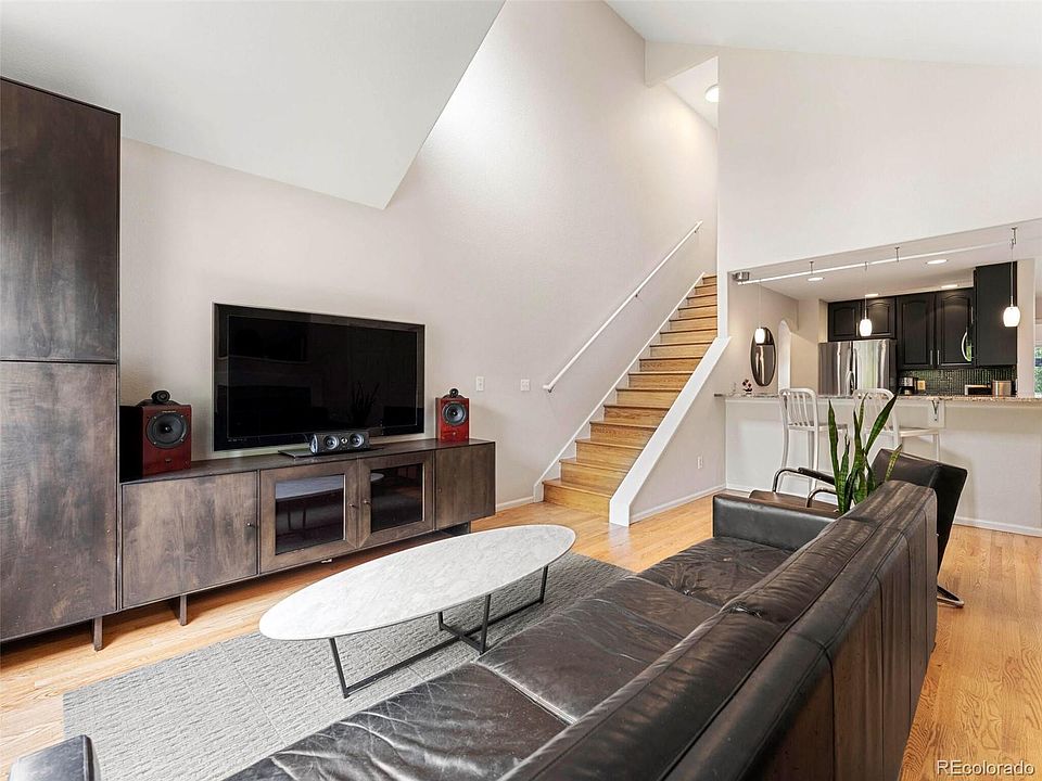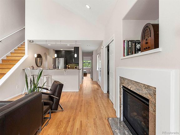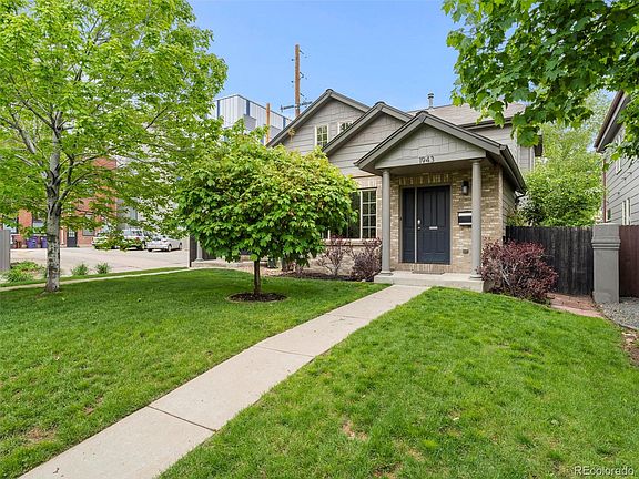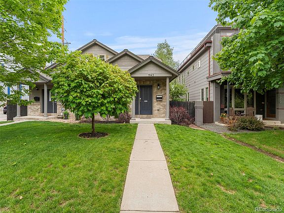 South-facing half-duplex with oversized backyard in the heart of LoHi. The home and its many outdoor living spaces are perfectly situated on the large lot to allow for ample front and rear yard resulting in superb indoor/outdoor flow and green space. From the front covered entry, the vaulted, voluminous two-story living room greets you with its gas fireplace and freshly refinished hardwood flooring throughout. The kitchen provides the perfect amount of space with ample storage and counter space to have everything you need at your fingertips when whipping up culinary delights, and boasts stainless steel appliances, deep in island sink, and eat-in bar. In the warmer months, grilling and dining al fresco are ideal with direct access from the kitchen to the side deck and back yard. The open floorplan living space transitions to the hallway leading to the powder bath and main floor primary suite w/ full bath. The vaulted primary bedroom benefits from ample closet space, oversized window overlooking the luscious backyard and receiving morning light, and continuation of the warm hardwood flooring. The second level hosts two additional bedrooms and full bath. The unfinished basement serves as workspace, storage, and an outstanding secondary living room with the window wells providing ideal Eastern light. The foresty rear yard offers the perfect setting to enjoy the wild nature from the pergola covered patio. Easy access to public transit and I-25 to access all the exploring that Colorado offers.