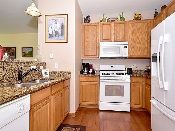 Hard-to-find 2 bedroom, 2 bath ranch end unit! ~ Light, bright living room/dining room with hardwood flooring, built-in cabinetry, and sliding glass door to lovely private patio ~ Fully applianced kitchen with hardwood flooring, beautiful granite countertops, and roomy eating area ~ Master bedroom with huge walk-in closet and private bath ~ Bathrooms with ceramic tile flooring ~ Laundry with washer and dryer ~ Attached 2 car garage ~ Minutes to expressways, parks, forest preserve, walking trails, and downtown Plainfield ~ Top notch Plainfield schools ~ Low HOA ~ Well-maintained community ~ Easy, stress-free living!