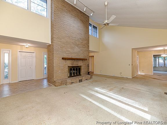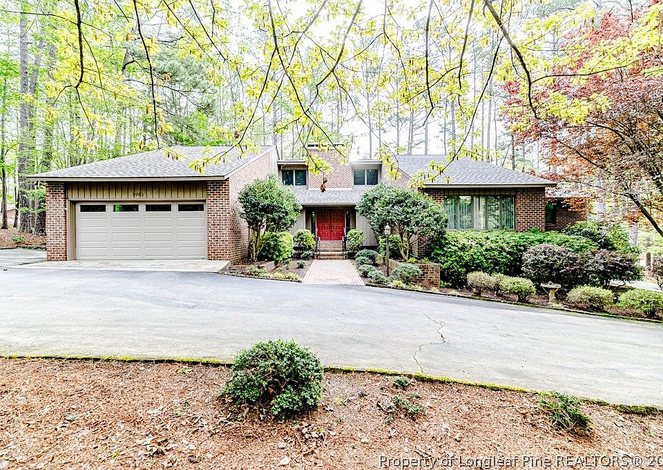 Nestled within the beautiful Golf East neighborhood of Carolina Trace, this classic brick ranch home epitomizes 1-level living. Boasting nearly 3,100 square feet of living space on a generous corner lot, this home offers a perfect blend of elegance and comfort. Step inside to discover 3 spacious bedrooms and 3.5 baths, providing great space for those who love to entertain. The heart of the home is the Living Room, complete with wet bar & a magnificent brick fireplace, ideal for cozy evenings or hosting gatherings. Additional living space is found in the family room, or retreat to the sunroom to enjoy the beauty of the outdoors year-round. The island kitchen is a chef's delight. Outdoor living with the rear grilling deck. Convenience is key with a two-car garage & separate golf cart garage/workshop located in the basement. The circle driveway offers easy access and adds to the home's curb appeal. Don't miss out on the opportunity to make this exceptional property your own!!!