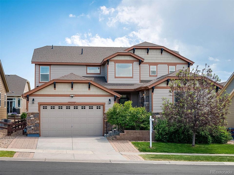 Welcome to a magnificent residence located in the desirable Village on the Green in Parker. This remarkable home offers an array of features & spacious living.The standout feature of this home is the full in-law suite, providing a separate living space with a distinct entrance. The suite includes a bedroom, 3/4 bathroom, living room, & kitchen, offering privacy & autonomy while maintaining connectivity to the main house. On the main floor, you'll find an open concept layout that creates a seamless flow between the living & dining area, providing an ideal space for gatherings. The well-appointed kitchen is a chef's dream, with an island, ample cabinets, granite countertops, & stainless appliances. Additionally, a main-level guest room & a full bathroom offer privacy & comfort for overnight guests. Upstairs, the primary bedroom awaits, offering a tranquil retreat with a 5-piece ensuite bathroom & a walk-in closet that conveniently connects to the laundry room, ensuring convenience & efficiency. Two additional bedrooms with a full bathroom shared between them. The bright & expansive loft provides endless possibilities, whether you use it for recreation, relaxation, or entertainment. Laundry is made easy with the upstairs location, adding convenience to your daily routine. The basement presents a vast blank canvas, complete with plumbing for a bathroom & five egress windows, offering endless possibilities for customization & expansion based on your unique preferences. Step outside to the backyard, where you can enjoy outdoor living on the pergola-covered back patio, perfect for relaxation or outdoor dining. The well-maintained backyard features four garden/flower beds, providing a green oasis for gardening enthusiasts to indulge in their passion. The oversized 3-car tandem garage offers ample space for vehicles & storage, with a convenient door providing access to the side yard & backyard, ensuring easy transitions between indoor & outdoor spaces.