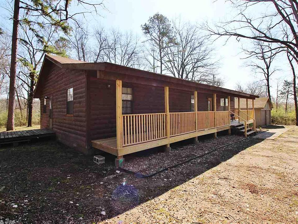 Country Charmer....Amenities include: Approximately 1560 SF, 3 Bedrooms, 2 Bathrooms, Kitchen / Dining Combo, Living / Dining Combo, Large Covered Front Porch where you can sit and enjoy, private setting on a Tree Shaded 6.31 acres + / -, Detached 2 Car Gargage ( 20' x 24' ), Laundry Area, Home is a Log Home Style Siding. A must see....